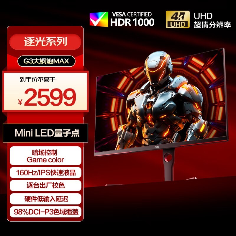 AOC逐光系列U27G3XM显示器27英寸4K160Hz仅2198元