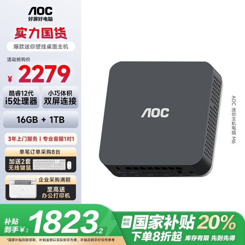 AOC迷你小电脑主机M6满2000减100元优惠券