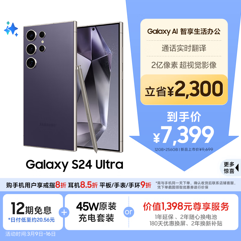 三星Galaxy S24 Ultra 5G手机京东促销价7339元