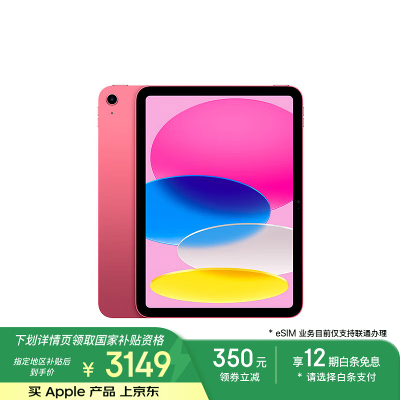 Apple iPad(第10代)64GB粉色平板京东优惠价