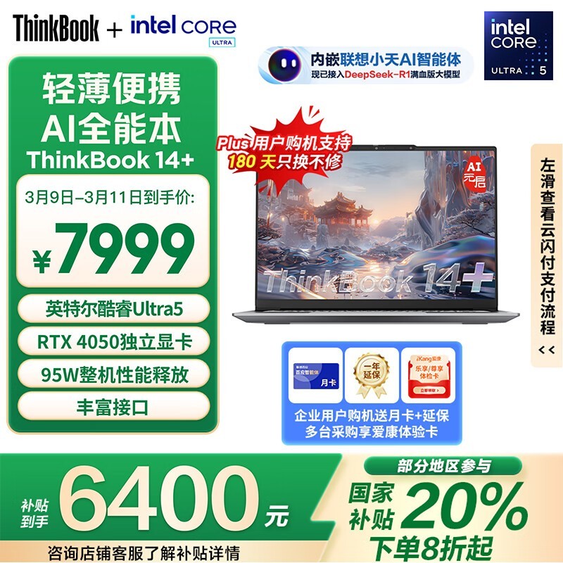 ThinkPad ThinkBook 14+轻薄本大屏高性能仅7899元