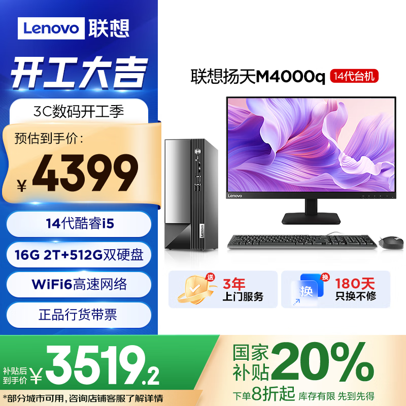 联想扬天M4000q办公主机,京东补贴后3519元