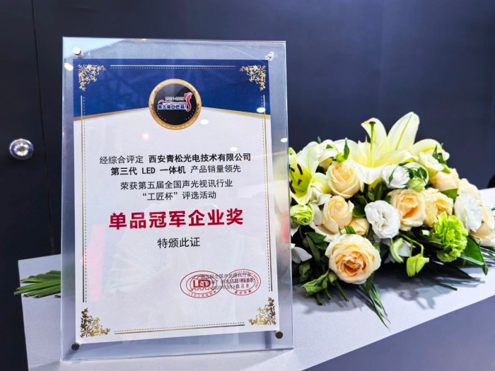 令人瞩目的是,青松光电展期斩获三项大奖:新品MIP LED 一体机荣获“金显奖”,广州黄埔区规划馆项目荣获“应用工程大奖”,凭三代LED一体机荣获“单品冠军企业奖”,再次彰显在行业内的卓越实力。