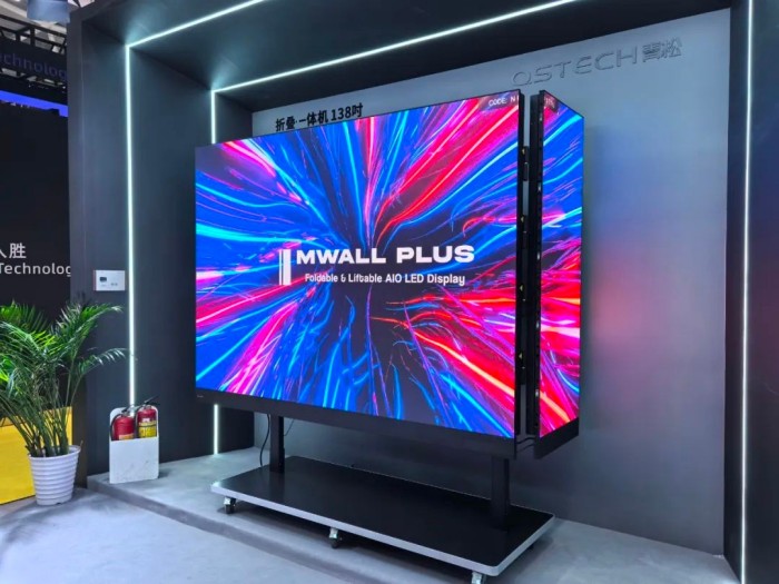 高集成一体化展区,青松光电展示了全新升级款138寸 GOB 折叠LED一体机。产品将一体机设计成可折叠式的结构,让屏幕可折叠、展开及升降,使移动、使用都更加轻松。GOB工艺大大提高了屏体的防护性能,内置高集成三合一板卡,在保证显示效果的同时,极大地提升了产品的便携性与灵活性。配置易于使用的安卓操作系统与多种输入接口,创造友好的用户体验。