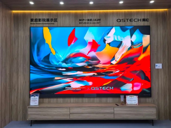 MIP LED一体机产品作为国内首发,展示了以MIP显示技术为核心打造的162寸4K高品质家庭影院方案。该产品拥有1000nits亮度、99%以上DCI-P3色域、低至0.005nits超低灰亮度等显示参数,内置6TOPS AI算力处理方案,支持8K@60fps视频解码,RGB4:4:4无失真HDMI视频输入,确保画面细节完美呈现。搭配120W混合扬声器系统,以一体化设计,为用户创造良好的观影体验。