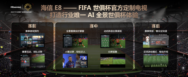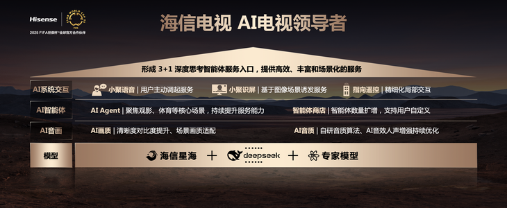 海信 E8Q 系列搭载星海大模型与Deepseek 开源模型,实现全场景 AI 深度交互。其独创的指向性遥控器,支持凌空绘画、三路直播同看等创新功能,操作便捷度提升 300%。此外,海信与 FIFA 合作开发的AI 全景世俱杯体验,通过 AI 追踪技术捕捉赛事细节,为球迷带来 “私人教练级” 观赛体验。