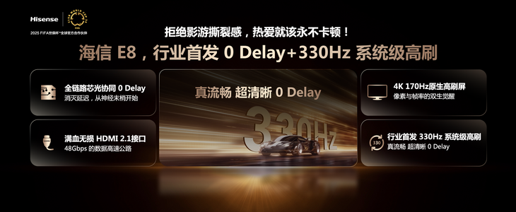针对影游爱好者的核心需求,E8Q 系列推出全链路高刷解决方案,通过 330Hz 系统级高刷、0 延迟背光同步及 HDMI 2.1 接口,实现从信号输入到画面显示的全流程优化。搭配U+Mini LED 光晕控制系统(至高 8320 分区、10000nits 峰值亮度),不仅消除了传统电视的拖影问题,更通过 “去伪存真” 策略保留自然光晕,提升画面真实感。
