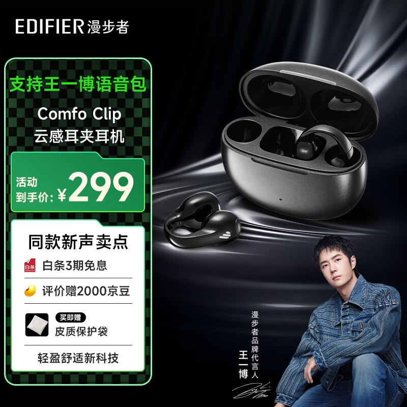 漫步者Comfo Clip蓝牙耳机京东好价299元享舒适音质体验