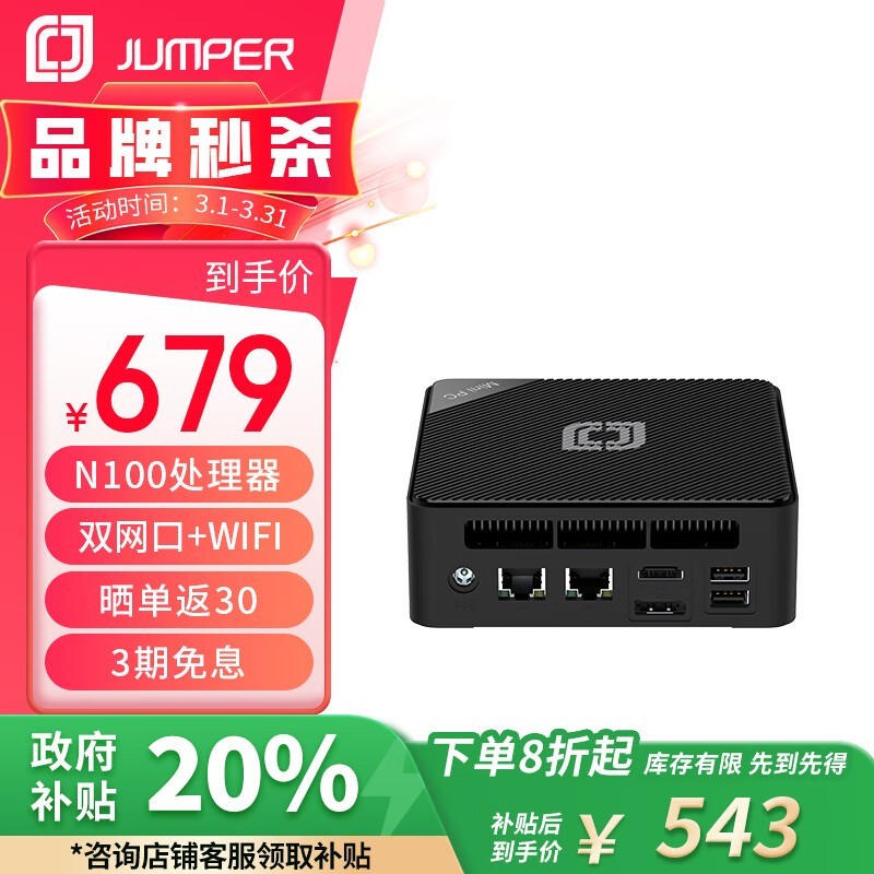 中柏N100 Pro II迷你主机京东优惠到手仅510元