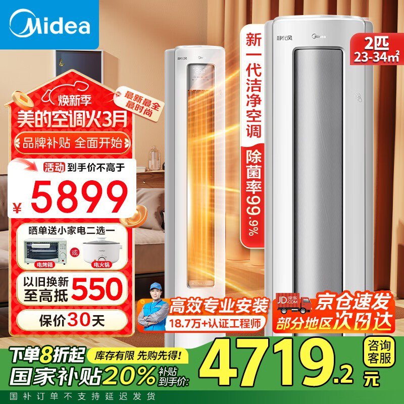 美的2匹立柜式空调KFR-51LW静优风大1匹新一级能效节能省电