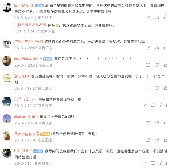 由此可见,极越汽车正在抓紧时间解决用户的售后问题,但在极越汽车官方账号的评论区可以看到,关于车辆的质保、维修、软件升级以及权益方面的问题还尚未解决。