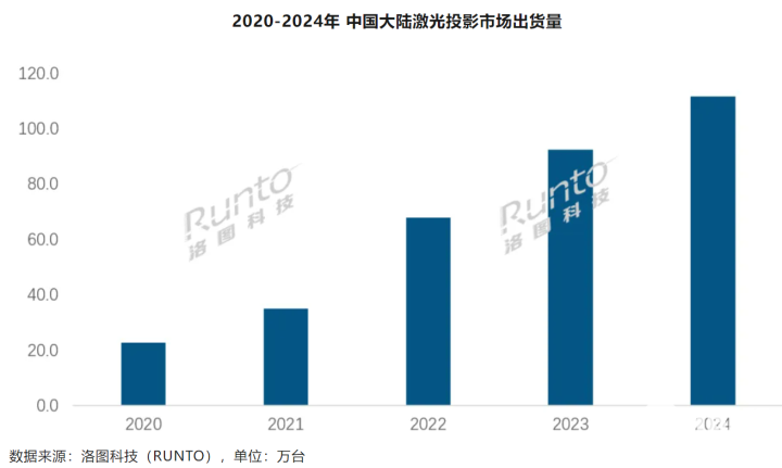 根据洛图科技最新发布的报告,2024年中国大陆激光投影市场(包括激光电视)出货量达到111.8万台,同比增长21.0%,显示出强劲的市场需求和发展潜力。