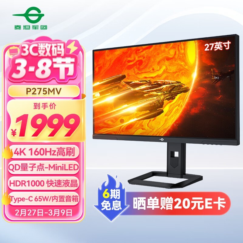 泰坦军团P275MV电竞显示器京东促销限时优惠