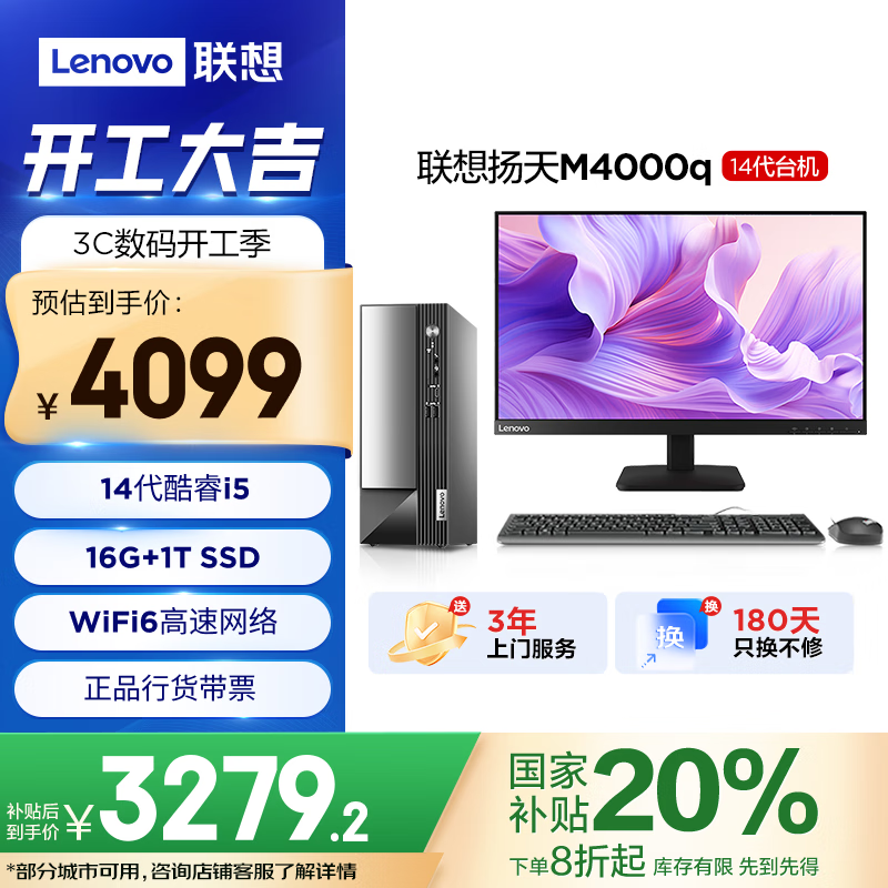 联想扬天M4000q台式电脑主机14代i5-14400京东国家补贴8折促销