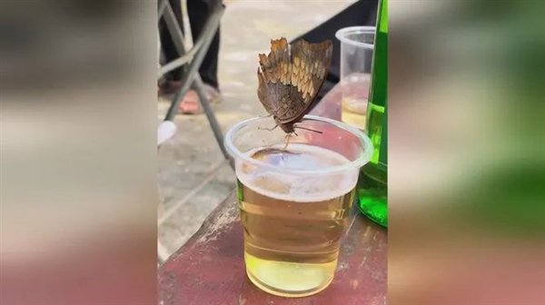 最后再提一下,有时候蝴蝶还会闯入酒宴吸食人的啤酒,但是被蝴蝶吸食过的啤酒最好倒掉,因为您永远不知道它们的喙管上一次吸的是什么!