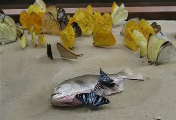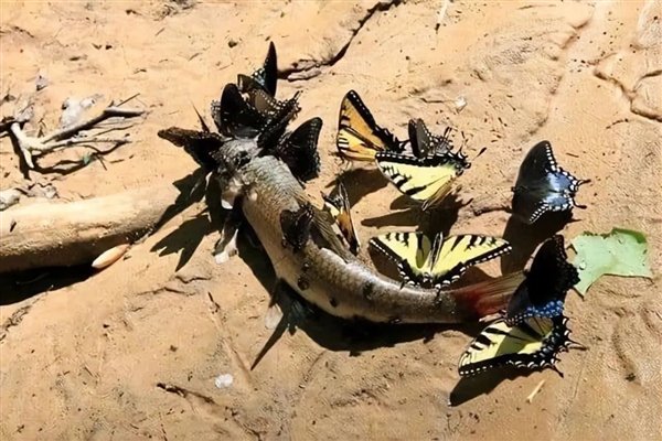蝴蝶“啃食”死鱼,这样的照片我们可以在网上找到很多。