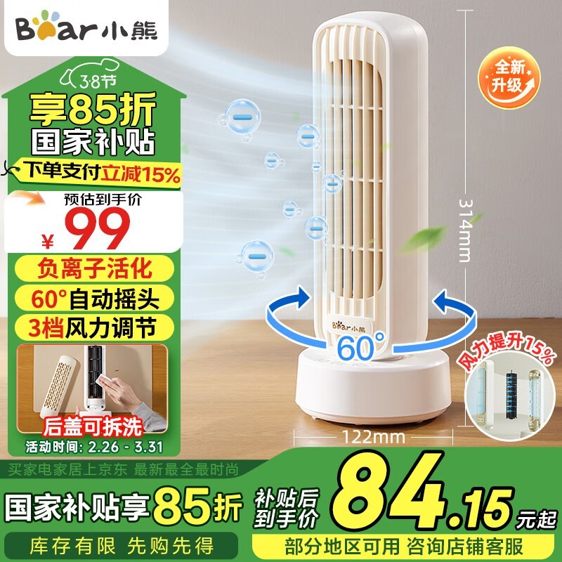 小熊桌面小塔扇优惠,原价99现75.39