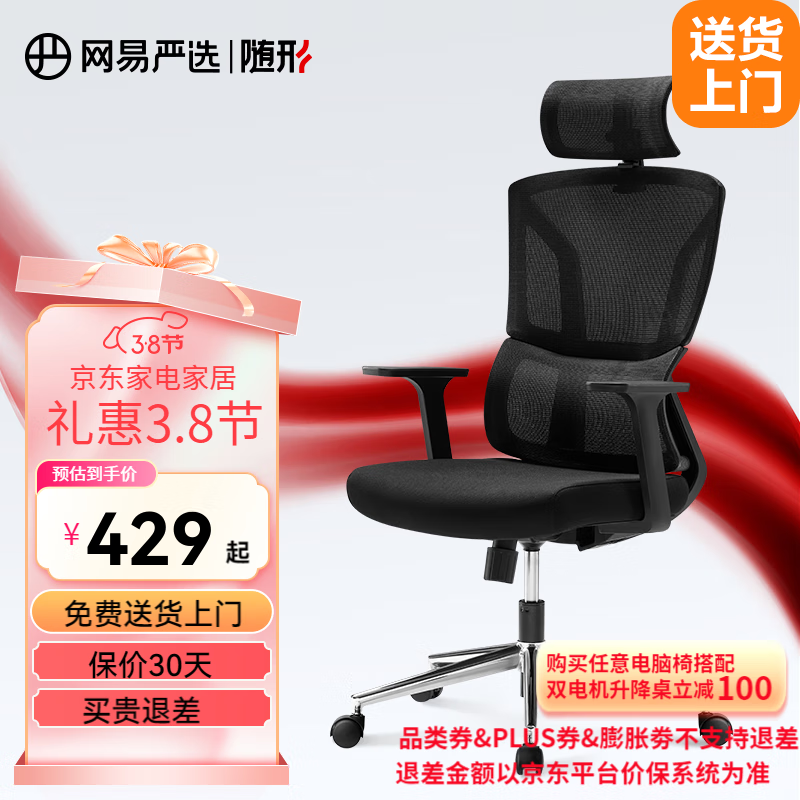 网易严选小蛮腰S3人体工学椅黑色经典款促销