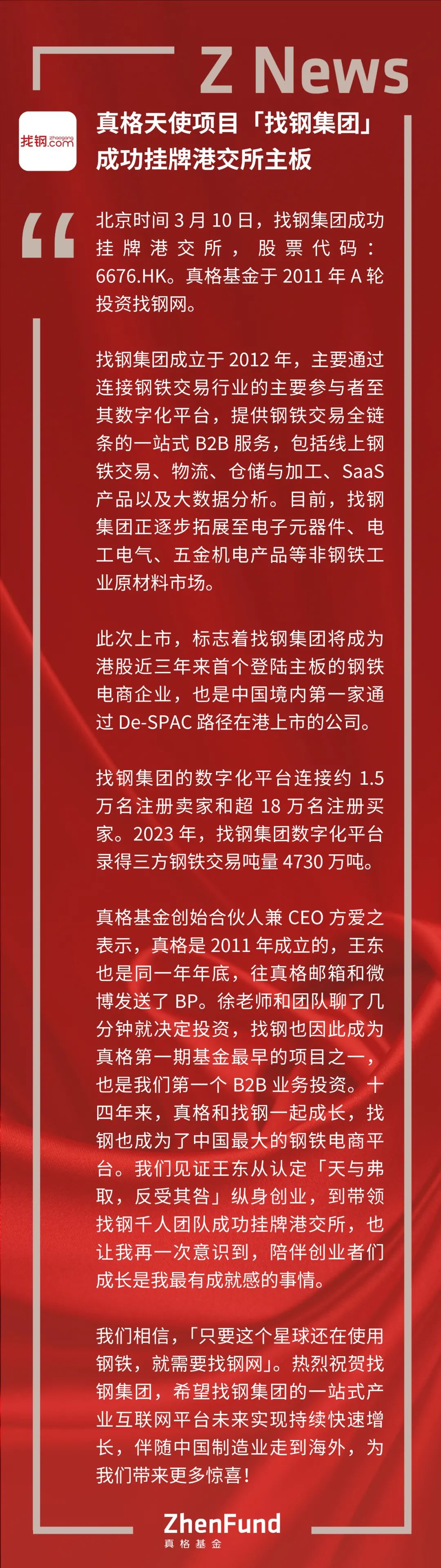 真格天使项目「找钢集团」成功挂牌港交所主板|Z News