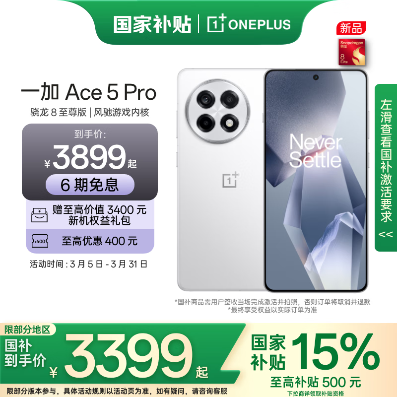 一加OnePlus Ace 5 Pro 5G白月瓷版,3399元超值入手