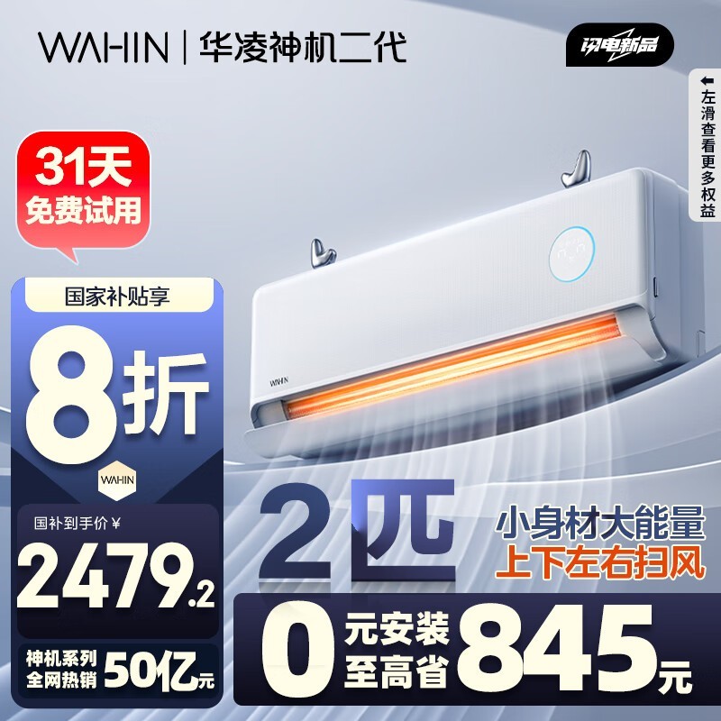 华凌空调2匹神机二代美的超一级能效挂机卧室客厅京东限时优惠