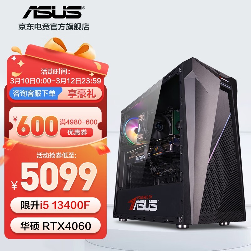 华硕DIY台式机i5-12400F/RTX4060京东好价5199元