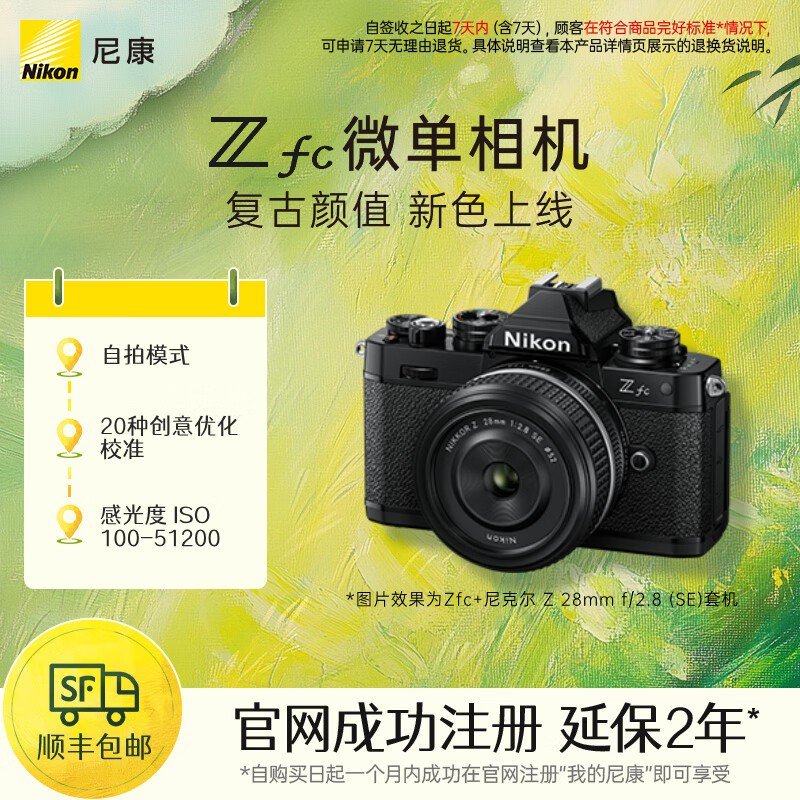 尼康Z fc+28mm f/2.8黑色套机复古微单相机京东好价7299元