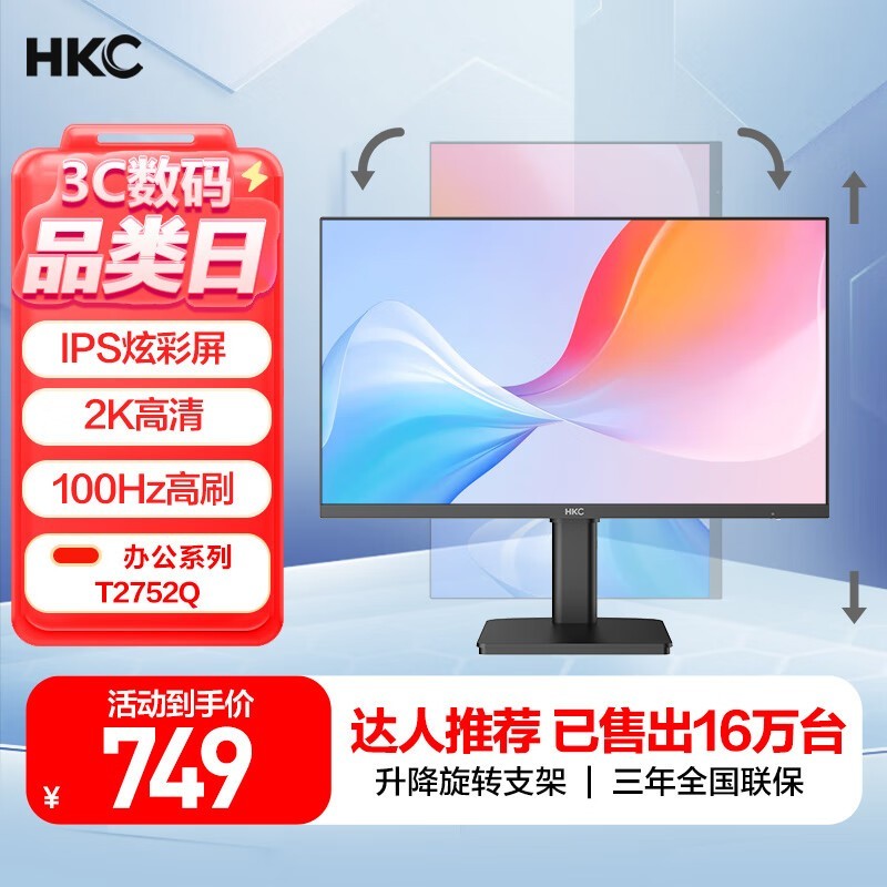 HKC T2752Q显示器促销,原价705现636.65