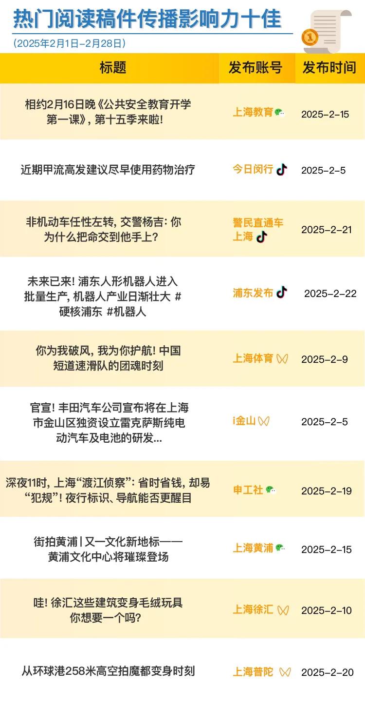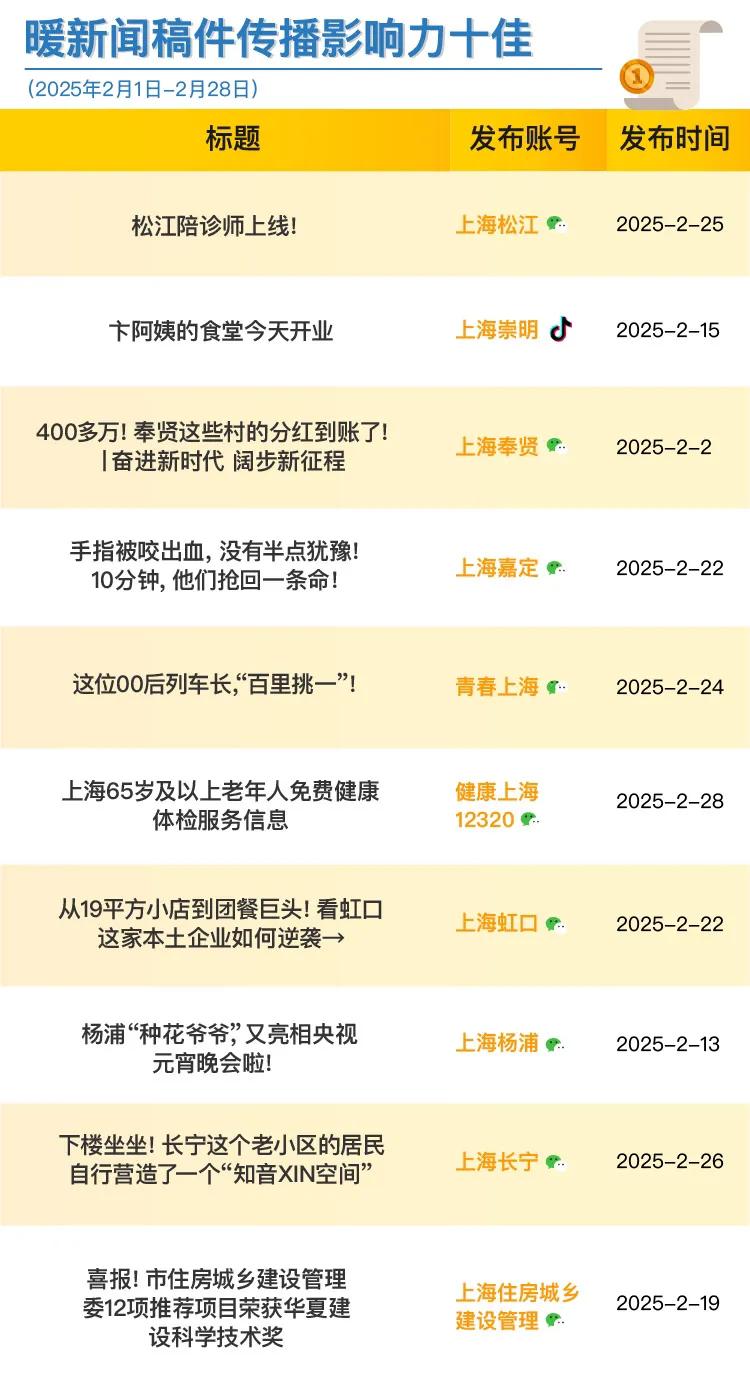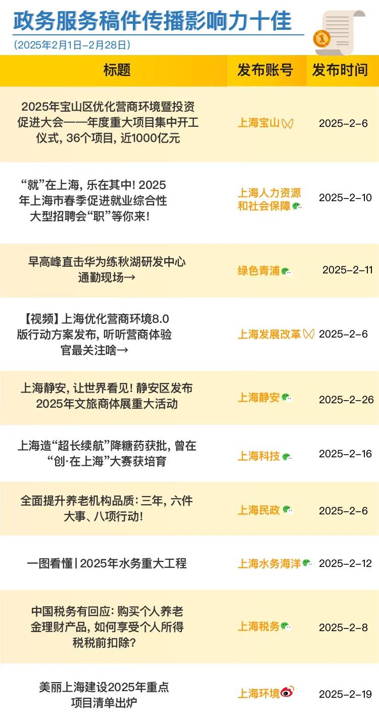市委网信办今天发布上海政务新媒体2025年2月榜单。