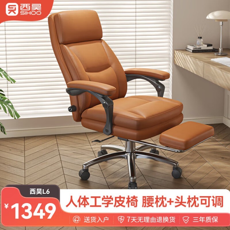 西昊L6人体工学椅头层牛皮京东1349元到手