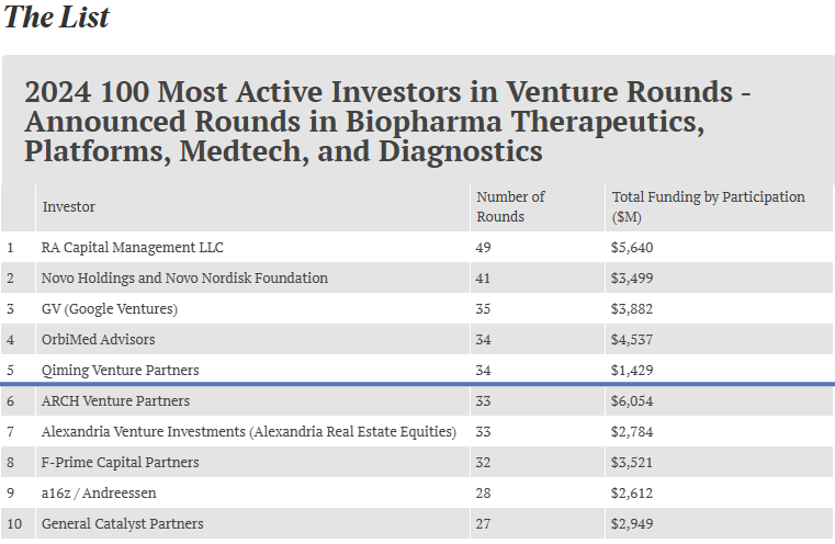 2024年全球医药创业投资机构TOP5