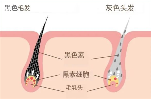 头发的颜色由头发里面的色素而决定,这种色素主要就是黑色素,简称黑素。黑头发的黑素多,白头发的黑素少或者没有,灰色头发则介于二者之间。