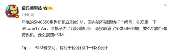 国产迭代旗舰机正在测试eSIM 极致轻薄 小米还是荣耀?