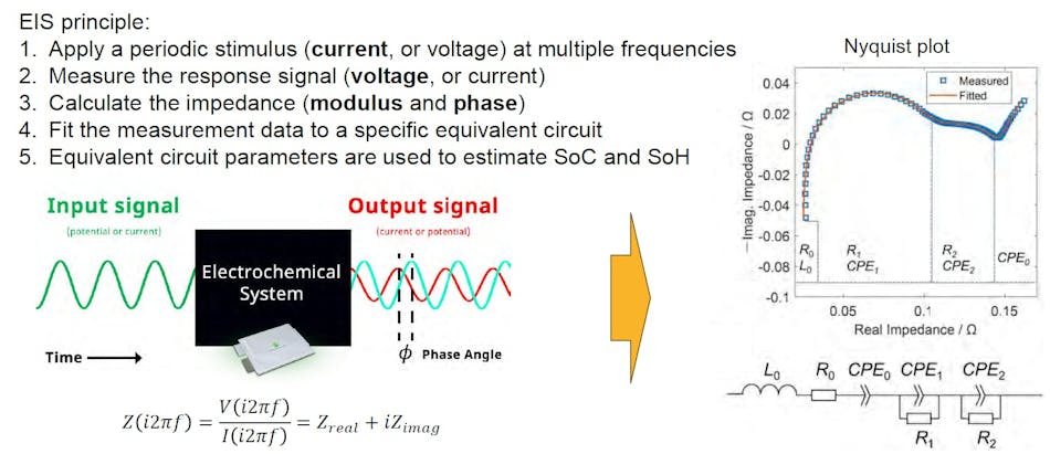图中显示了电化学阻抗谱 (EIS) 如何分析电池单元。