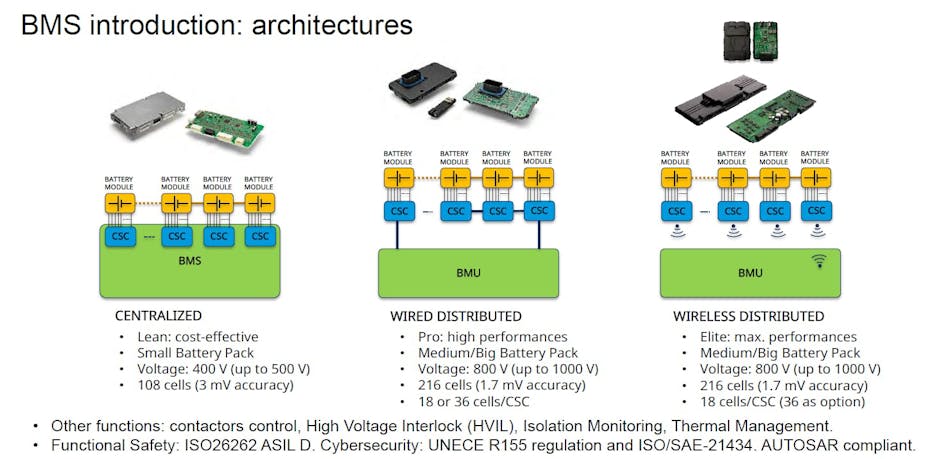 由于 EV 电池组的设计、电池格式和化学成分多种多样,因此每个 BMS 都与电池组的特定架构进行了密切校准。