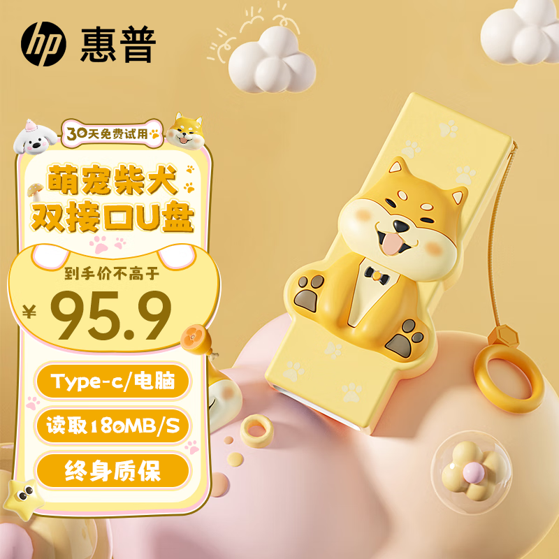 小巧双接口128GB萌宠U盘:高效存储,趣味出行,95.9元起!