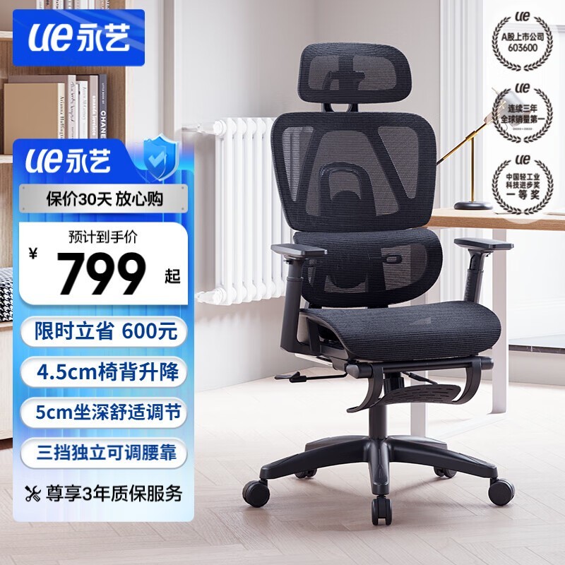 永艺ACT100撑腰椅人体工学电脑椅京东活动价799元