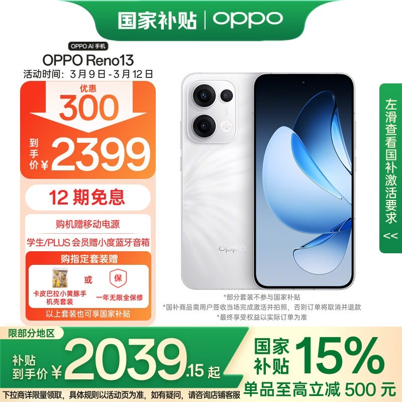 OPPO Reno13 12GB+256GB心动白京东优惠价2027元