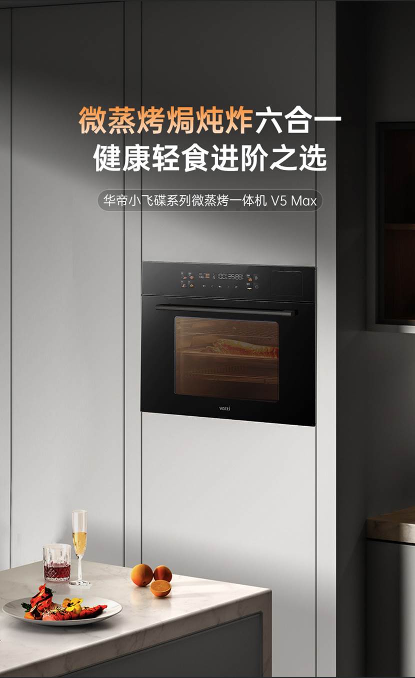 微蒸烤一体机小微光V5融合了微蒸烤焗炖炸六大功能,拥有多种变频微波模式,烹饪效率更高,营养保留更丰富,也有一键速蒸功能,实现高效完成营养料理。六合一的功能便利又全面,轻松应对各种烹饪想法。
