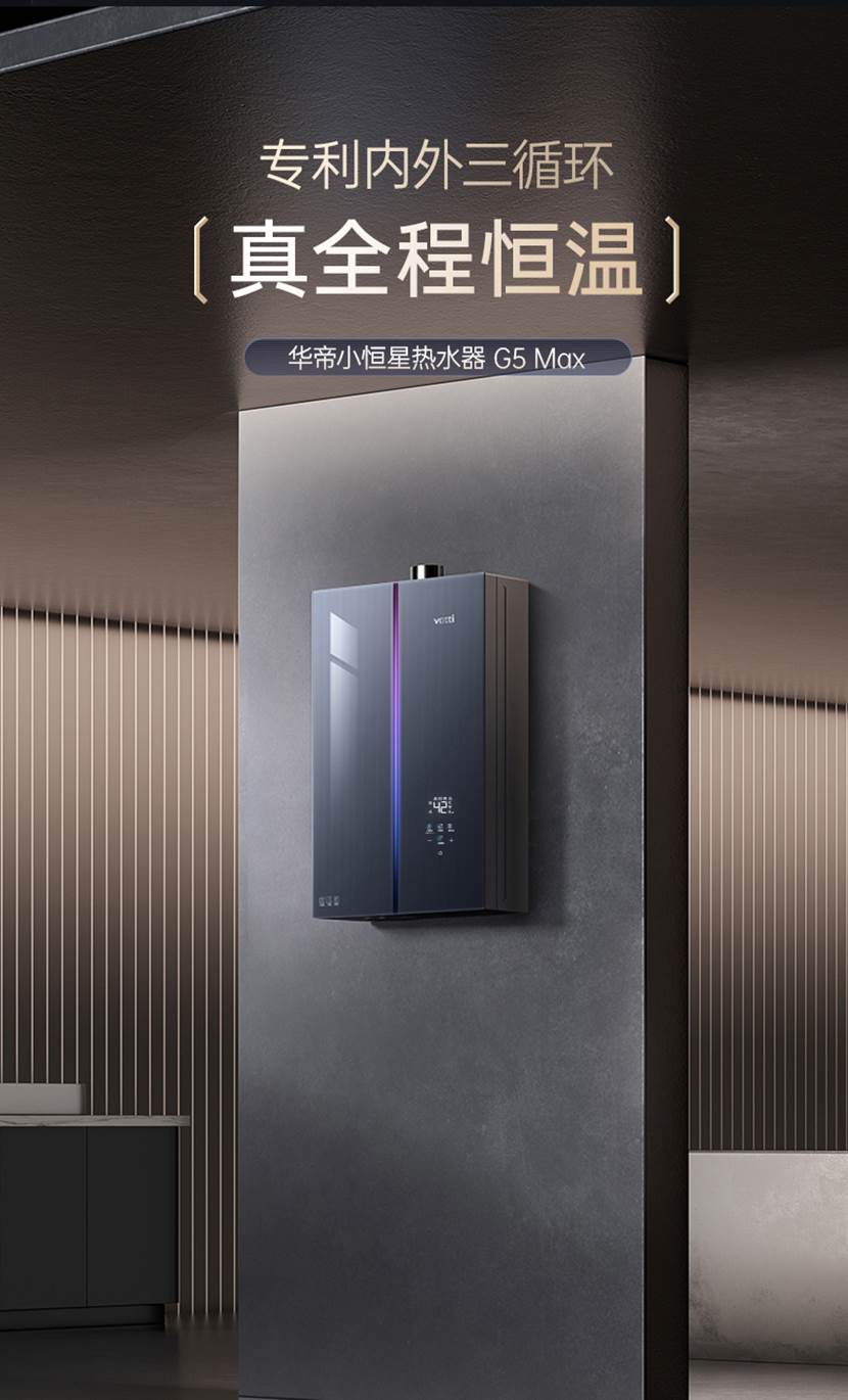 华帝小恒星G5 Max高配的标准,堪称行业同价位的天花板。其搭载专利内外三循环,可实现3秒即出热水、水温全程恒定,一键实现16L变18L,增压又增容,同时噪音低至39dB,水质达到母婴级沐浴用水标准,为用户带来恒温舒适的沐浴体验。