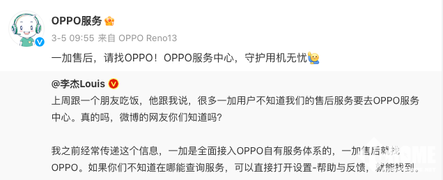 一加中国区总裁李杰在社交媒体平台发文称,很多一加用户不知道我们的售后服务要去OPPO服务中心。“一加是全面接入OPPO自有服务体系的,一加售后就找OPPO。”