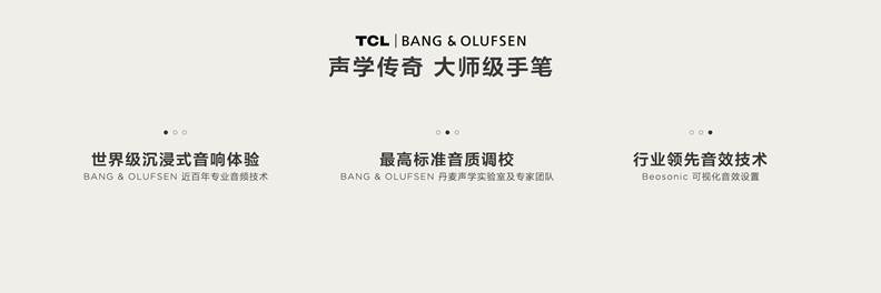 极致的画质需要配以极致的音质。此次,TCL与世界级顶奢音响品牌B&O独家深度定制出臻藏级音效(Q10L Pro系列搭载),所有音响部品组成都由B&O认定,每一台电视的声学软件均由B&O声学团队专业调校,同时采用了Hi-END级声乐技术,作为音响领域的专有名词,是对音频系统的最高追求,也是家庭音响的最高标准,对音响设备要求更高,从而实现声音的极致保真,以及纯臻质感。