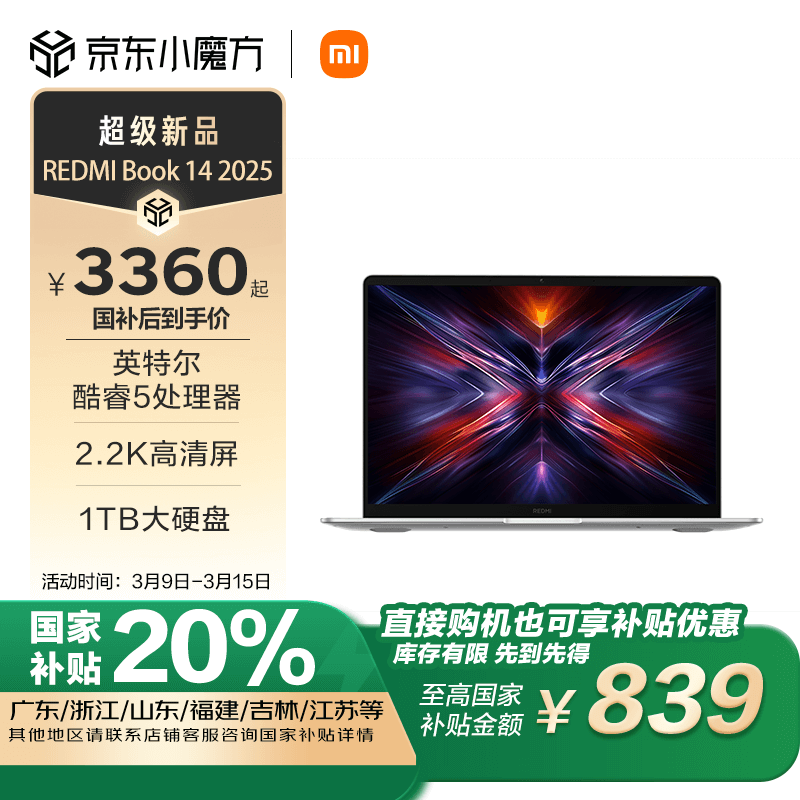红米REDMI Book 14 2025轻薄本京东自营优惠30元