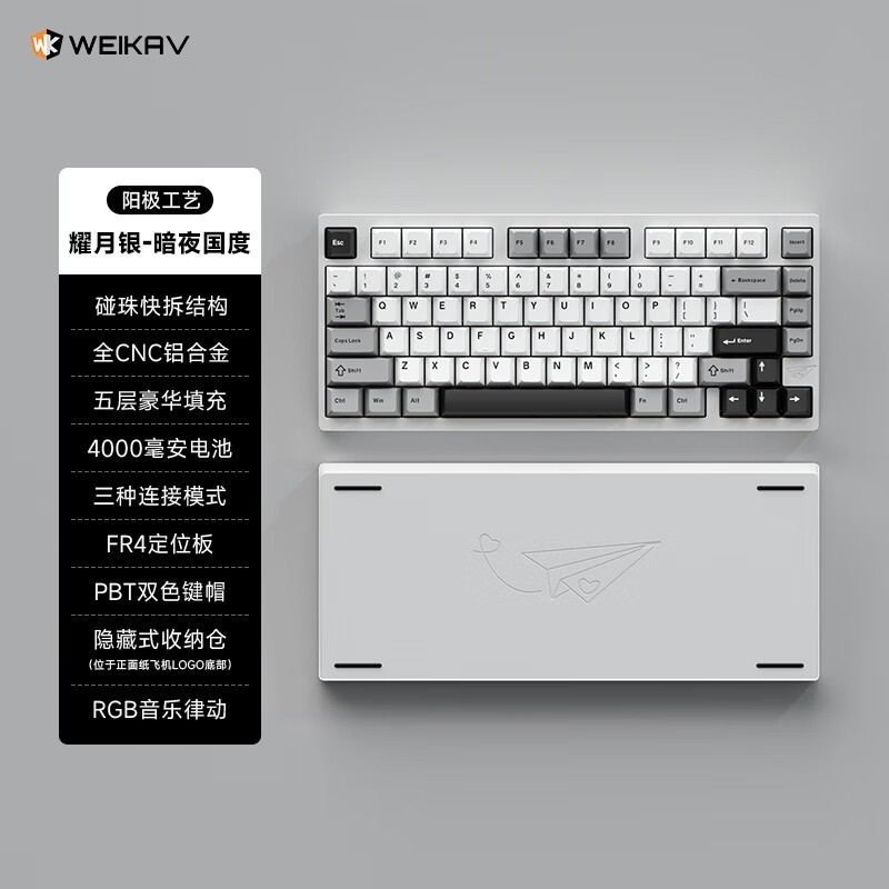 维咖D75三模机械键盘月白轴耀月银251元到手