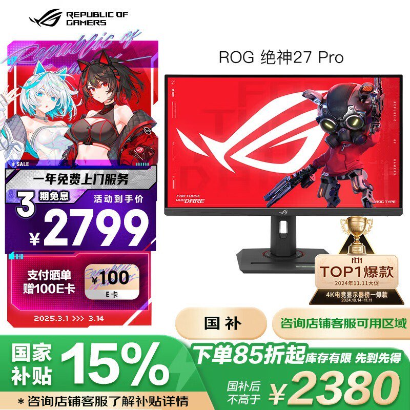 华硕ROG XG27UCG绝神4K电竞显示器限时特惠
