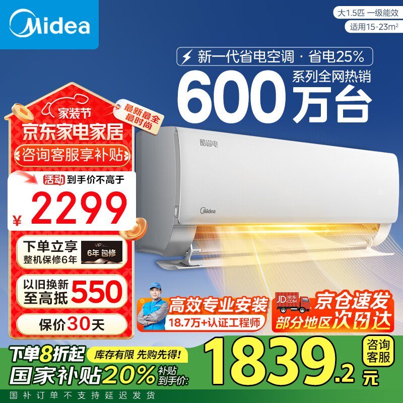 美的酷省电1匹壁挂空调京东优惠价1759元