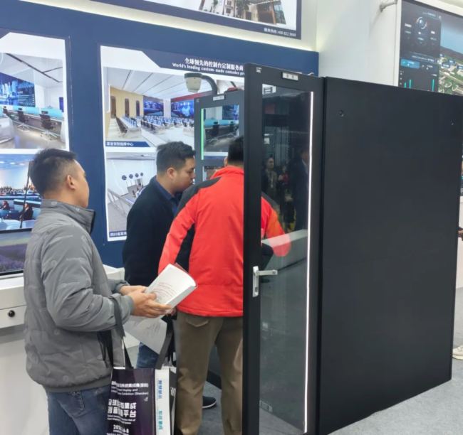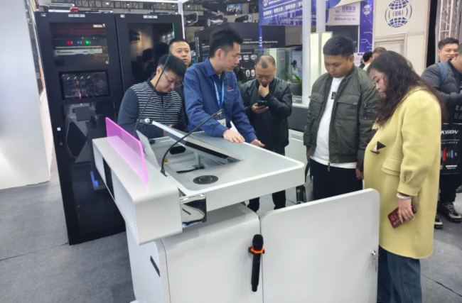本次展会上,照彰带来了新产品赛博控制台,智能演讲台、一体化机柜、灵犀/凌傲系列控制台。新颖、科技的控制台,让来观展的专业人士络绎不绝。
