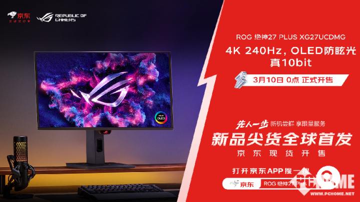 3月10日,ROG绝神27 Plus电竞显示器在京东全球先人一步首发。该显示器集第4代26.5英寸QD-OLED防眩光显示屏、4K分辨率、240Hz刷新率、真10bit色彩于一身,凭借顶尖的配置和创新的技术,吸引了众多硬核玩家和专业创作者的关注。即日起,打开京东APP搜索“ROG绝神27 Plus”即可抢购这款显示器,可享受6期分期免息、一年免费上门服务的福利,前100名下单并支付的消费者晒单还可获赠100元京东E卡。