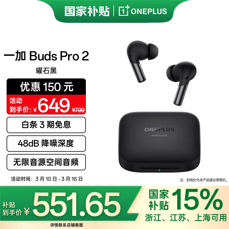 一加OnePlus Buds Pro 2蓝牙耳机 浙苏沪国补立减