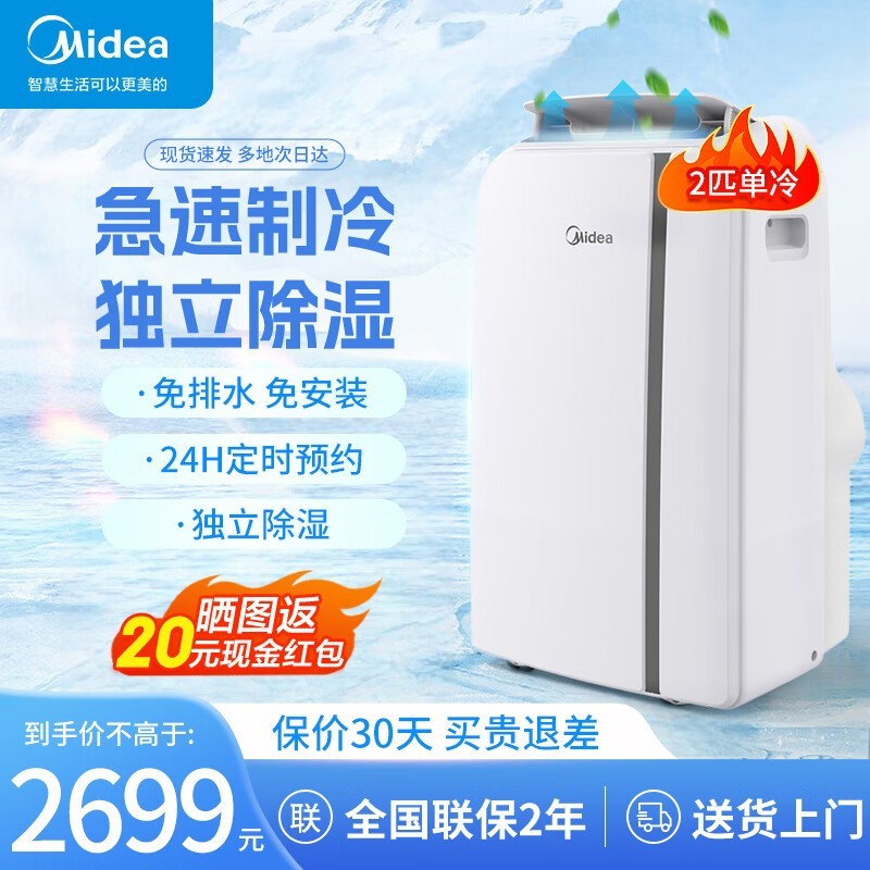 美的家用移动空调2匹冷风机卧室书房小空间静音省电节能环保